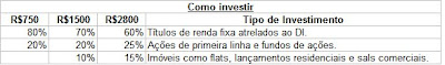 O interessante também são as sugestões de investimentos para cada caso. Veja o resumo no quadro abaixo: